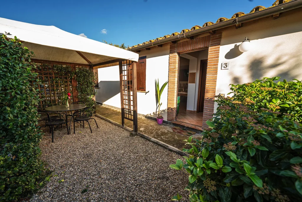 Outside, a furnished gazebo with a table, chairs, and deckchairs provides an ideal space to relax outdoors. Guests can also enjoy a dedicated pool area with sun loungers, perfect for moments of well-being and tranquility.