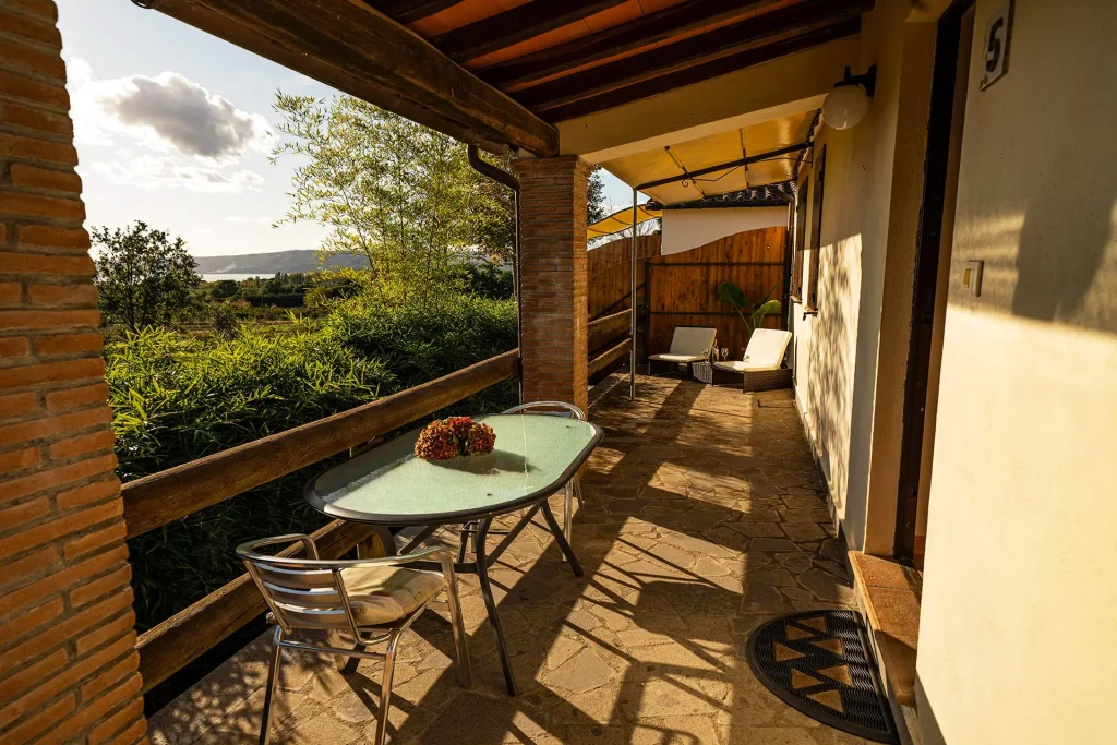 Located on the ground floor, Apartment 5 is an independent, elegant and welcoming accommodation offering a stunning view of Lake Bolsena. With an area of 45 sq.m, it’s the ideal choice for couples or families looking to enjoy a relaxing stay immersed in nature, without compromising on comfort.