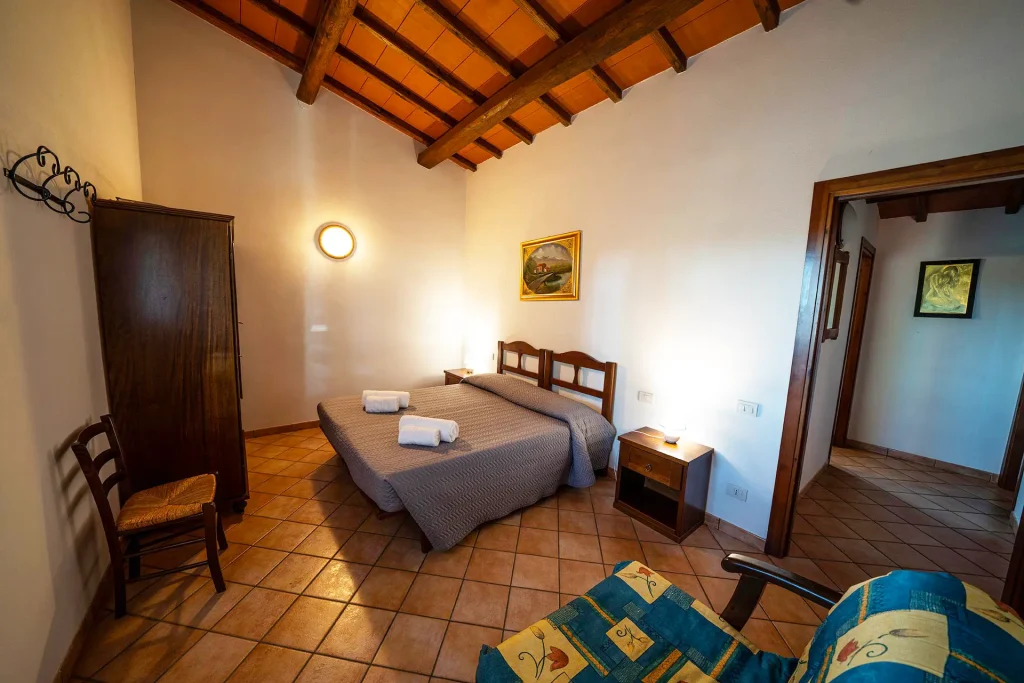 Apartment 6 at Agriturismo Dolce Vita is a spacious and bright accommodation with panoramic views of Bolsena Lake, perfect for families or friends seeking a relaxing stay immersed in nature. With 65 sqm of space, it offers large, welcoming rooms equipped with every comfort.